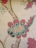 サンダーソン社のヴィンテージデザインRoslynは1910年にデザイナーウイリアム ターナーにより生み出された壁紙が始まりでした。長年にわたり人気を博したこのデザインに、贅沢なまでの色使いで刺繍を施した当生地は、まるでジャコビアン様式を思わせるまでのクラシックな作品に仕上がっています。一枚のカットクロスの大きさ:生地巾143cmx1M素材:綿79% レイヨン21% (刺繍部分)柄の大きさ80cm