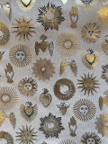 古典柄でもある宗教的奉納品のモチーフがちりばめられたフランスのプリント生地です。